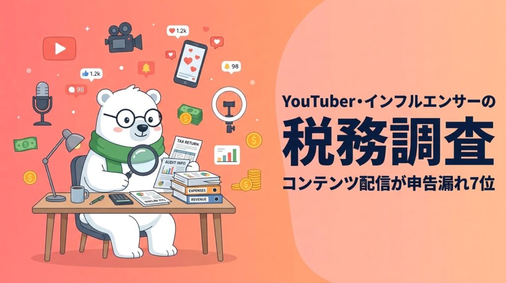 コンテンツ配信が申告漏れランキング7位に入り、インフルエンサーの脱税事件がニュースで大きく報道される時代です。税務調査のリスクは、フォロワー数や収入の多寡に関係なく、すべてのインフルエンサーに存在します。
